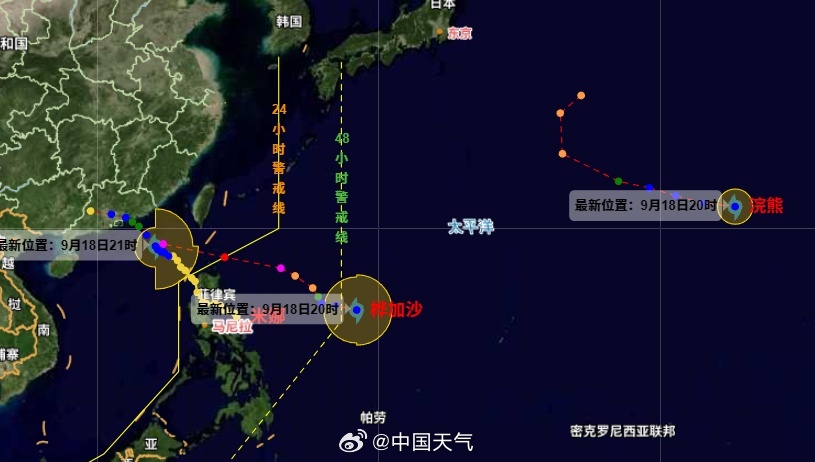 9月18日,继今年第17台风“米娜”生成后,晚上20时,今年第18号台风“桦加沙”、第19号台风“浣熊”也生成了!目前,后两者都为热带风暴级,且皆离我国较远。